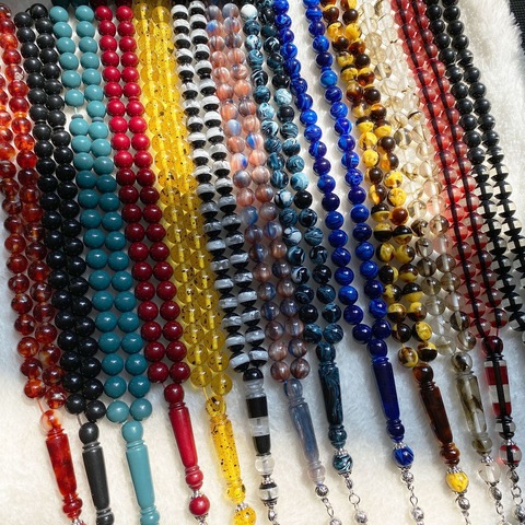 New Vàng Nhựa Tesbih Hổ Phách Màu Handmade Cầu Nguyện Hạt Vòng Đeo Tay 10Mm 45 Mân Côi Hợp Kim Tua Hồi Giáo Quà Tặng Hồi Giáo Misbaha